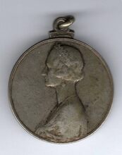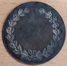 De penning is rond met gladde rand, en is als volgt ingegraveerd: