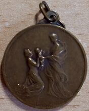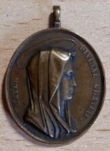 Op de voorzijde : rondom links MATER, rondom rechts DIVINAE GRATIAE, centraal het borstbeeld van de Maagd Maria met sluier en aureool naar rechts gericht