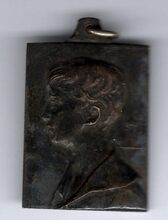 De penning is rechthoekig met gladde rand, oog en ring, en is als volgt ingegraveerd: