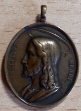 De devotiepenning is ovaal met geprofileerde rand met oog en ring, en is als volgt ingegraveerd: