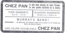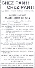 Advertentie : Chez Pan. Grande soirΓ©e de Cala. 29/07/1922