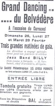 Advertentie : Grand Dancing du Belvédère. Trois grandes matinées de gala. 26, 27 et 28 Février