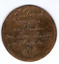 PENNINGENOp de keerzijde : horizontaal E. DAVID / VOORZITTER / EN STICHTER / DER MAETSCHAPPY / 19 AUGUSTUS / 1833
