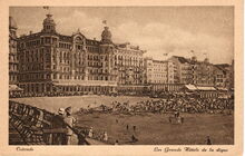 Ostende - Les Grands HΓ΄tels de la digue. - De grote hotels langs de Zeedijk gezien vanaf de westelijke gevel van de Kursaal. Strandrecreatie op het Groot Strand in het intebellum