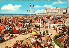 Kruger, NΒ° 933/48. - Oostende - Strand en Kursaal. Ostende - Plage et Kursaal. Ostend - Beach and Kursaal. Ostende - Strand und KΓΌrhaus. - Strandrecreatie op het Groot Strand nabij de Lido. Op de achtergrond, de westgevel van het vierde Kursaal