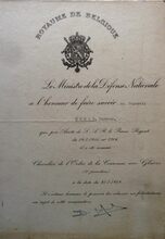 Op de keerzijde : rondom links β’ AUGUSTE β’ LIEBAERT β’, rondom rechts β’ 1912 β’ / gesigneerd H. HEUSERS & FISCH , centraal het portret van Auguste Liebaert in staatsiekostuum met medailles, naar links gericht
