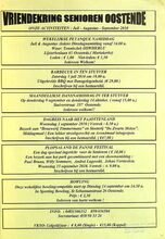 Wekelijkse petanque namiddag. Juli en augustus : iedere dinsdagnamiddag vanaf 14.00 u. Waar : Tennisclub OSWHERLU, Lijsterbeslaan 61, Oostende (Mariakerke). Leden : 1,00 EUR. Niet-leden : 1,50 . Iedereen welkom!. Barbecue in Ten Stuyver. Zaterdag 3 juli 2010 om 19.00 u. Uitgebreide BBQ met dansgelegenheid. (29,00 EUR). Inschrijven bij een bestuurslid. Maandelijkse dansnamiddag in Ter Stuyver. Op donderdag 9 september en donderdag 14 oktober. (vanaf 15.00 u.). Stuiverstraat 357 Oostende. Iedereen welkom!. Dagreis naar het Pajottenland. Woensdag 1 september 2010 (vertrek : 8.30 u.). Bezoek aan "Brouwerij Timmermans" en Stoeterij "De Zwarte Molen". Middagmaal (een lekker streekgerecht) en avondmaal inbegrepen. Inschrijven bij een bestuurslid. (47,00 EUR). Plopsaland De Panne Festival. Een dag speciaal ingericht voor de senioren (10,00 EUR). Een bezoek aan het park gecombineerd met een shownamiddag : Paul Bruna, Willy Sommers, Andrei Lugovski, Johan Verstreken. Woensdag 15 september 2010. Vertrek : plus, minus 9.00 u. Inschrijven bij een bestuurslid. Bowling. Onze wekelijkse bowlingcompetitie start op dinsdag 14 september om 14.30 u. In Sporting Bowling, St Sebastiaanstraat 16 Oostende. Prijs : 2,50 EUR. Iedereen van harte welkom!. VKSO-lidgeld/jaar : 8,00 EUR (single). 15,00 EUR (koppel) Formaat : 42 x 30 cm