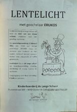 Lentelicht met goochelaar Erukos. Kinderboerderij de Lange Schuur wil voor de start van een nieuw seizoen uitpakken met een gezellige namiddag. Op woensdagnamiddag 2 februari 2011 om 14.00 uur brengt goochelaar Erukos trucs en animatie voor kinderen en hun ouders. Achteraf worden pannenkoeken met chocomelk of koffie geserveerd. Inschrijven kan in de Lange Schuur op maandagnamiddag, dinsdag, donderdag of vrijdag tijdens de werkuren. Toegangsprijs voor deze namiddag : 5,00 EUR per persoon. Kinderboerderij De Lange Schuur, Stuiverstraat 599, 8400 Oostende.