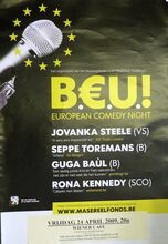 Formaat : 59 x 42 cm. B. E. U. european comedy night met Javonka, Steele, Seppe Torremans, Guqa, Baul Rona Kenndy.