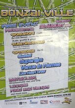 Formaat : 42 x 60 cm. WORKSHOPS DJ met Sensei Kubb, Graffiti en Gitaar KUNSTWEDSTRIJD Rock rally & fotografie met profssionele jury OPTREDENS Shuffled - Superlijm - Venus In Flames - Lion Heart Crew BATACLAN Straatanimatie met vzw Cirq LOUNGE FOOD AN DRINKS www.bonzai-vzw.be