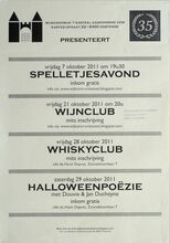 Formaat : 30 x 42 cm. 7 oktober 2011: Spelletjesavond 21 oktober 2011: Wijnclub 28 oktober 2011: Whiskyclub 29 oktober 2011: HalloweenpoΓ«zie www.wijkcentrumkasteel.blogspot.com