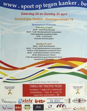 Formaat : 46 x 36 cm. Zaterdag 24 april. 08:00 - 18:00 Rommelmarkt. 08:30 - 15.00 Wandelzoektocht (met prijzen) 14:00 Begeleide wandeltocht 8km. 14:00 - 15.00 Zumba. Animatie & Kinderspelen. Zondag 25 april. 08:00 - 18:00 Rommelmarkt. 08:30 - 15.00 Wandelzoektocht (met prijzen). 10:00 en 14:00 Begeleide wandeltocht 8km. 08:30 - 13:00 Mountainbikers 40-50-60 km. 09:00 Wielertoeristen 100km. 14:00 Recreatiefietsen (gezinsfietstocht) 25km. Animatie & Kinderspelen.