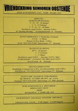 Formaat : 29 x 42 cm. Elke dinsdag van de maand: Bowling. Elke tweede donderdag van de maand: Dansnamiddagen. 6/01-20/01-3/02-17/02-3/03-17/03: Manillen kaarting. 14/01: Nieuwjaarsreceptie. 1/02: Statutaire algemene vergadering. 4/02: Schalgerfestival te Oostakker.