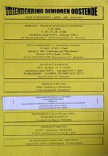 Formaat : 30 x 42 cm. Bowling: Telkens op dinsdag namiddag. 5-26 april. 3-10-17-24-31 mei, inschrijvingen. Dansnamiddagen: Elke 2de donderdag van de maand. 14 april - 12 mei - 9 juni met op 12 mei: verkiezing: "Miss Senior". Manillen Kaarting op 6 -20 april en 4 - 18 mei. 6 mei: Oma's ontbijt t.g.v. Moederdag. Weekelijks petanque voor senioren, iedere dinsdagnamiddag van de maanden junu, juli en augustus. 9 juni: TD met koud buffet. 27 mei: Stadsbezoek Gent.