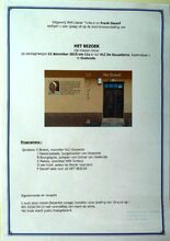 Formaat : 42 x 30 cm. Programma : Sprekers : E. Brunet, voorzitter VLC Oostende. J. Vandecasteele, burgemeester van Oostende. N. Bourgoignie, schepen van Cultuur van Oostende. S. Mansis, voorzitter VKH Torhout. G. Van Hoof, auteur en literair recensent. F. Decerf leest voor uit Het Bezoek Formaat : 42 x 30 cm