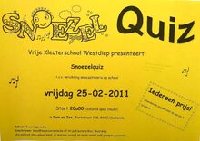 Formaat : 30 x 42 cm. - Snoezel Quiz. Vrije Kleuterschool Westdiep presenteert : Snoezelquiz t.v.v. inrichting snoezelruimte op school. Vijdag 25/02/2011. Start 20u00 (deuren open 19u30) in Duin en Zee, Fortstraat 128, 8400 Oostende