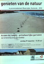 Genieten van de natuur in provinciedomein Raversijde, Oostende - 2010. Kruien bij laagtij - prinsheerlijke garnalen. Op verkenning langs de vloedlijn. Zondag 29 augustus - 13.30 uur Formaat : 42 x 30 cm