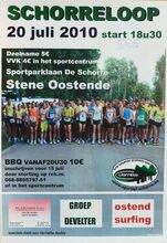 Formaat : 42 x 30 cm. Schorreloop 20 juli 2010 start 18u30. Deelname 5 EUR. Vvk 4 EUR in het sportcentrum, Sportparklaan De Schorre, Stene Oostende. BBQ vanaf 20u30, 10 EUR. Inschrijven voor 15 juli. Vzw Sportief Schorre Oostende.