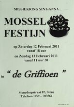 Formaat : 42 x 30 cm. Missiekring Sint-Anna. Mosselfestijn op zaterdag 12 februari 2011 vanaf 18 uur en zondag 13 februari 2011 vanaf 11 uur 30 in "de Griffioen", Stenedorpstraat 87, Stene