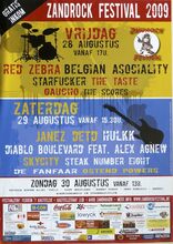 Formaat : 60 x 42 cm. Red Zebra, Belgian Asociality, Starfucker, The Taste, Gaucho, The Scores, Janez Deto, Hulkk, Diablo Boulevard Feat. Alex Agnew, Skycity, Steak Number Eight. De Fanfaar, Ostend Powers, Patrick Dupon Alias "Pulle, Rudy Marciano, Danny Fabry, Ingo Roberts en Andrei treden op. Onwerp affiche : Jurgen Wyllie.
