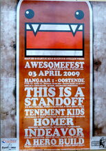Formaat : 60 x 42 cm. - This is a Standoff, Ex Belvedere, Forty Cent Fix & One Shot Left ; Tenement Kids, Punkrock 'n' roll from the stables of Funtime recs ; Homer, sincere, agressive, melodical punkrock ; Indea Vor, local polkapunk, shut up Tijl !, demo still available ; A Hero Build, brand new melodical punkrock, first show ever !