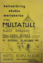 Formaat : 42 x 30 cm. E. Douwes- Dekker. Komt spreken : Mevr. Adda Deprez van Oostende. Professor "moderne Nederlandse letterkunde". R.U.Gent