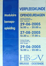 Formaat : 57 x 42 cm. - HBOV. Hogere Beroepsopleiding voor verpleegkunde St. Jan-St.Jozef. Brugge-Oostende. Koning Albert I-laan 6, 8200 Sint-Michiels. Campus Oostende. Frère-Orbanstraat 137, 8400 Oostende. Campus Brugge. Zonnekemeers 18, 8000 Brugge. Modulaire beroepsopleiding