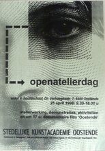Formaat : 42 x 30 cm. Atelierwerking, demonstraties, aktiviteiten en om 17u: documentaire film 'Oostende'. Hoofdschool : Dr. Verhaeghestraat 7. Afdeling Centrum : Ieperstraat 35. Afdeling Vuurtorenwijk : Vingerlingstraat 15 bis.