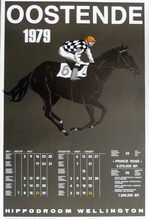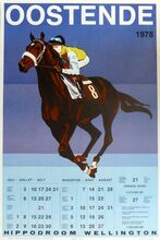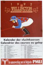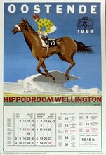 Formaat : 77 x 61 cm. Wed hier op de galoprennen van Oostende, van 29 juni tot 1 september 1991. TiercΓ© Ladbroke. Ladbroke Sportworld.