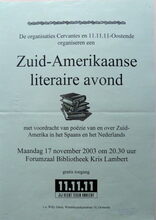 Zuid-Amerikaanse literaire avond maandag 17 november 2003 om 20. 30 uur, forumzaal bib Kris Lambert.