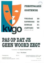 Formaat : 44 x 30 cm. Met steun van het Noordstarfonds. Toneelkring van Vlaamse Klub Kust. Van Hugo Claus en regie naar Paul Houwen.