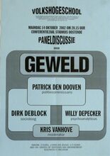 Formaat : 42 x 30 cm. Paneldiscussie : Patrick Den Dooven, politiecomissaris, Dirk Deblock, socioloog, Willy Depecker, psychoanalyticus, Kris Vanhove, moderator.
