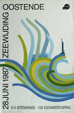 Formaat : 60 x 40 cm. Botenparade, eucharistieviering. Afficheontwerp : Willy Bosschem.