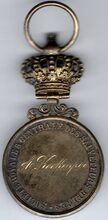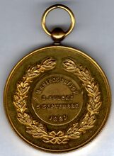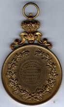 Op de keerzijde : rondom links en rechts een lauriertak onderaan samengestrikt, In een binnencirkel rondom boven MANIFESTATION, horizontaal E. BULCKE / 5 SEPTEMBRE /1897