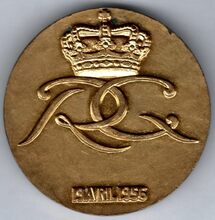 De gedenkpenning is rond met gladde geprofileerde rand met bol en ring, en is als volgt ingegraveerd