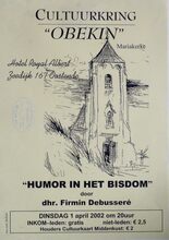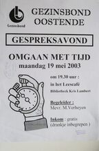 Formaat : 42 x 30 cm. Maandagvoordrachten door: Prof. Dr. J. Plaizier- Vercammen, Prof. Dr. Marc Boogaerts, Prof. Dr. J.P. Van Bendegem, Dhr. Michel Collon, Dhr. Lucas Catherine, Prof. Dr. Etienne Vermeersch en Prof. Dr. Jean Bourgeois. Namiddag- en Avondvoordrachten door: Dhr. en Mevr. A. en O. Haesaert. De Heer Dominiek Druart Dhr. en Mevr. Demarsin-Opsommer en De Heer Willy Vyane.