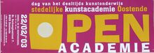 Formaat : 21 x 60 cm. Dag van het deeltijds kunstonderwijs. Stedelijke Kunstacademie Oostende. Open Academie. 22/02/2003 Enkel in de hoofdschool van 10 tot 18 uur.