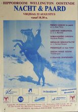 Formaat : 42 x 30 cm. TOPDAGEN DRAF. 13 Juli Prijs Toerisme Oostende. 27 Juli Grote Prijs Stad Oostende. 10 Augustus Prijs van de Burgemeester. 2 September Afluitende Champagneprijs "Binet". TOPDAGEN GALOP. 23 Juni British Racing Day. 7 Juli Prijs Toerisme Oostende. 14 Juli Prijs van de Belgische Kwekers. 22 Juli Grote Prijs Stad Oostende. 28 Juli Grote Prijs van de Eigenaars. 11 Augustus Dag Nv Lalement. 12 Augustus President of the U.Arab Emirates Day. 1 September Irish Day. 8 September Qatar Racing Day. 9 September Afsluitende Prijs "Tot Weerziens"