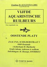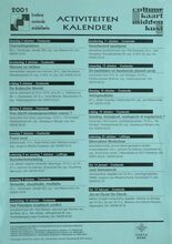 Formaat : 42 x 30 cm. 2/10: ChannelingsΓ©ance. 4/10: Wassen en strijken, speciaal voor mannen. 5/10: Cursus: "De Arabische Wereld" door dhr. L. Catherine en dhr. L. Brusselaers. Lezing: "Hoe slecht nieuwsgesprekken voeren" door Ann Delye. 6/10-7/10: Kunsttentoonstelling. 7/10: Pianoconcert: Franz Liszt. 9/10: Relaxatie, visualisatie, meditatie. 10/10: Voordracht: "Het Palestijns-IsraΓ«lische conflict" door dhr. Paul Bekaert. 11/10: Voordracht: "Verantwoord speelgoed" dor dhr. Piet Notebaert. 15/10: Voordracht: "De kwetsbare en kwetsende planeet aarde" door prof. dr. Jan Hertogen. 16/10: Helingmeditatie. 19/10: Lezing: "Voeding: Biologisch, ecologisch of vegitarisch?" door Lief Cuyvers. 20/10: Alternatieve modeshow. tot 13/01/2002: Retroospectieve door JosΓ© Vermeersch. tot 15/02/2002: Werken uit eigen verzamelig met Jan en Oscar De Clerck