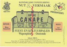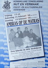 Formaat : 42 x 30 cm. - Een klucht in drie bedrijven door Eddy van Ginckel. Regie: Belinda Geselle. Boedt Ken, Cleppe Lydia, Geselle Redgy, De Rycker Clo, Menu Norbert, Menu Bernard, Ingelbrecht Carolien, Surmont Luc, Van Acker Inge en Vercruysse Leslie.