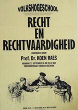 Affiche : Volkshogeschool. Recht en rechtvaardigheid. Conferentiezaal stadhuis Oostende. 21/09/1998.