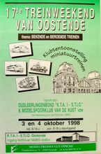 Formaat : 60 x 37 cm. Thema : Bekende en Beroemde treinen. Klubtentoonstelling miniatuurtreinen. Ingericht door Oudleerlingenbond "KTA I - STIO" en Modelspoorklub van de Kust