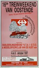 Formaat : 60 x 35 cm. Thema : 150 jaar Zwitserse spoorwegen. Klubtentoonstelling miniatuurtreinen. Ingericht door : Oudeleerlingenbond "KTA I - STIO" en Modelspoorclub van de Kust