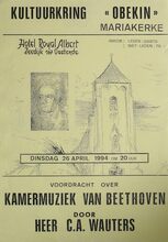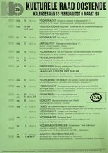 Formaat : x cm. Kunstgalerij "de holmenshoeve" nodigt u uit op de vooropening van expo met schilderijen van Willy BOSSCHEM en beemden van Luis RAMOS op zondag 5 maart 1995 om 11 uur. inleidend woordje wordt gegeven door dhr. Hugo Brutin. juwelenhandel luc maerten stelt u voor "het kleindere gouden juweel" met aksent op verloving- en trouwringen. Expo open van zaterdag 4 MAART 94 TOT EN MET DINSDAG 4 APRIL 95 telkens van 10 tot 21 uur, zaterdaf en zondag van 10 tot 18 uur in de holmenshoeve, tempelhofstraat 6, 8433 slijpe-middelkerke tel 059/30.25.16 ook open tijdens het paasweekens van 15 april tot en met 18 april. kunstgalerij "de holmenshoeve" stelt permanet werken tentoon anthoon de clerck, roger raveel, lil seys, danny bloes, jan de lee, josiane vanhoutte, jacky mollet, arlette vereecke, krus van de maele, jaques & line bruynseraede, g. theuninck, Iea d'huyvetter, marc plettinck, j.p. zinjΓ©, i. duriez, fr. van belle, s.bauer, fr.bogaert, j. nyssen, p. kennes, eddy hoet, g. germonprΓ©, s. christensen, a. charlet, h. minnebo, g. holmes, b. eeckhaut, h. pΓΌtter, s. bulcke, k. koopman l. brebels. r. deleu, l. florizoone, k. decooman, raf tanghe, p.baes. volgende vernissage, zondag 23 april om 11 uur. aquarellen van martine bruggeman en beelden pierre claes.