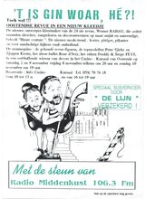 Een nieuwe langspeelplaat met Oostendse leute en Oostendse liedjes door Zwarte Pier, Bert Gevaert Lucy Monti, Pete Monti, Pette Sjieke, Dreetje en De Lachzaaiers gepresenteerd door De Zeewacht Teksten: De vismienvrienden ; Zeg nie toet zien ; 't Is gedoan met de dikke madam ; Vasche Ploaten ; Bertino ; Klein verdriet, groot verdriet ; De Oostendse koetsier ; Oostende kan ik noois vergeten! ; Bie uus an 't zeètje
