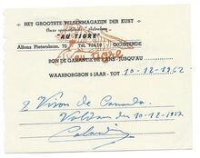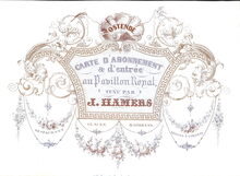 Formaat : 10 x 13,8 cm. - Ostende. Carte d'abonnement & d'entrรฉe au Pavillon Royal tenu par J. Hamers. - Restaurant, glaces &sorbets, Dรฎners a volontรฉ