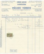 Formaat : 8 x 11,6 cm. - Hรดtel de la Maison de Ville- OSTENDE. tenu par J. Denys-Verbaere. On y trouve de belle รฉcuries et une cour spacieuse pour les voitures. Table d'hรดte ร l'heure - ร diners particuliers - ร des prix modรฉrรฉs.