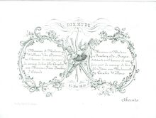 Formaat : 13,3 x 17,8 cm. - Monsieur & Madame Wullems Van Dromme ont l'honneur de vous faire part du mariage de leur fille Coralie avec Monsieur Remi Bouchery d'Ostende / Monsieur et Madame Bouchery De Breyne d'Ostende ont l'honneur de vous faire part du mariage de leur fils Remi avec Mademoiselle Coralie Wullems. - 25 Mai 1852