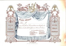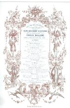 Formaat : 27 x 20,1 cm . - Menu de 100 couverts à l'occasion du mariage de Monsieur Gustave De Breyne avec Mademoiselle Céline Du Bois, célébré à Dixmude le 6 Septembre 1853