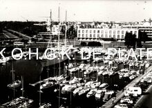 Formaat : 8,5 x 12,5 cm. - Zicht op de Mercator jachthaven met het stadhuis in de achtergrond